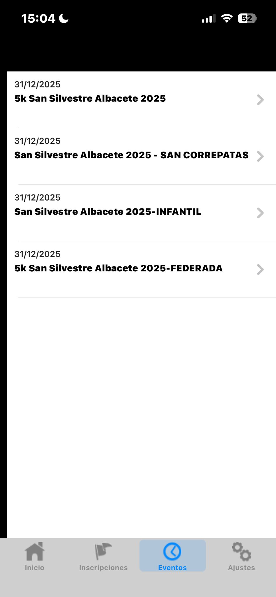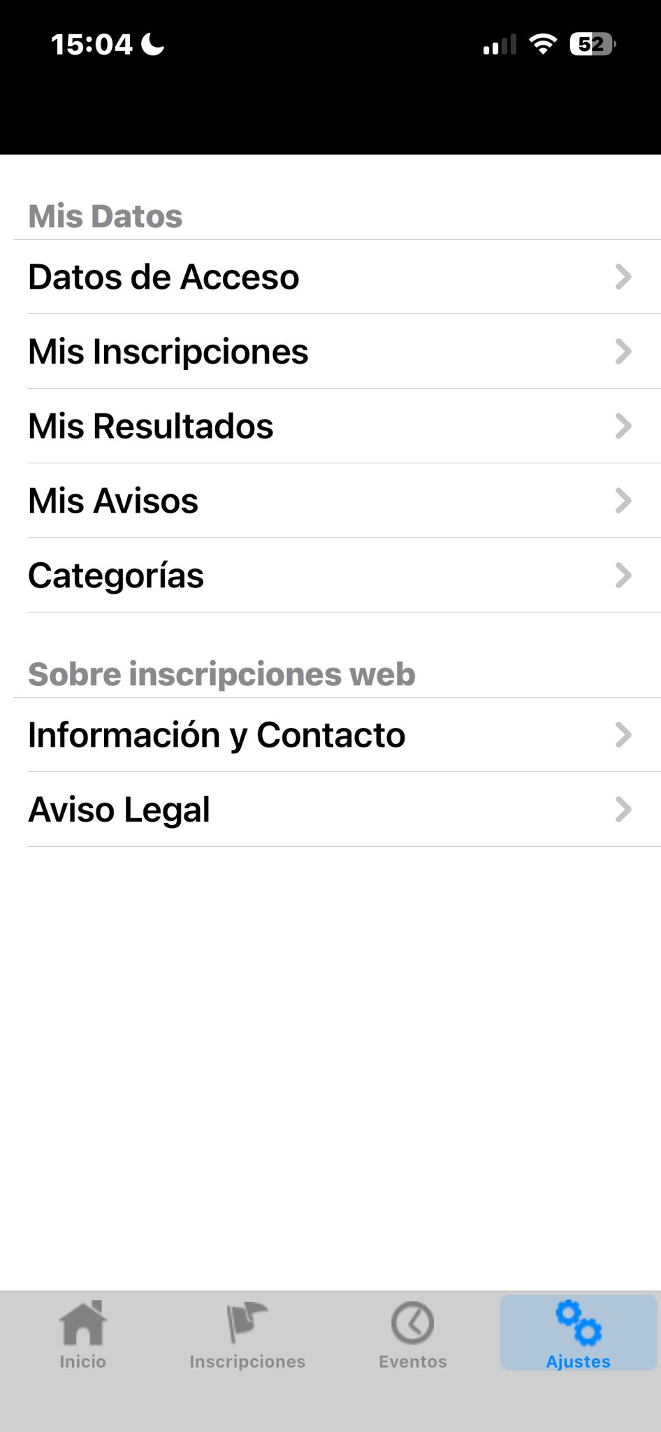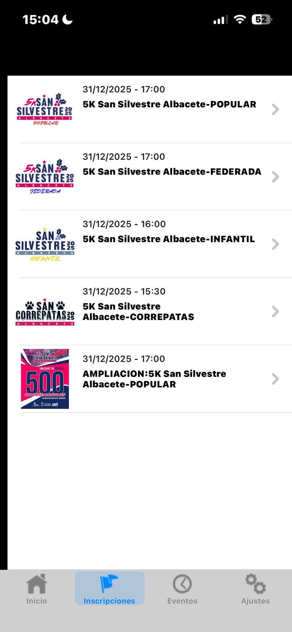 INICIO | INSCRIPCIONES | EVENTOS | AJUSTES |