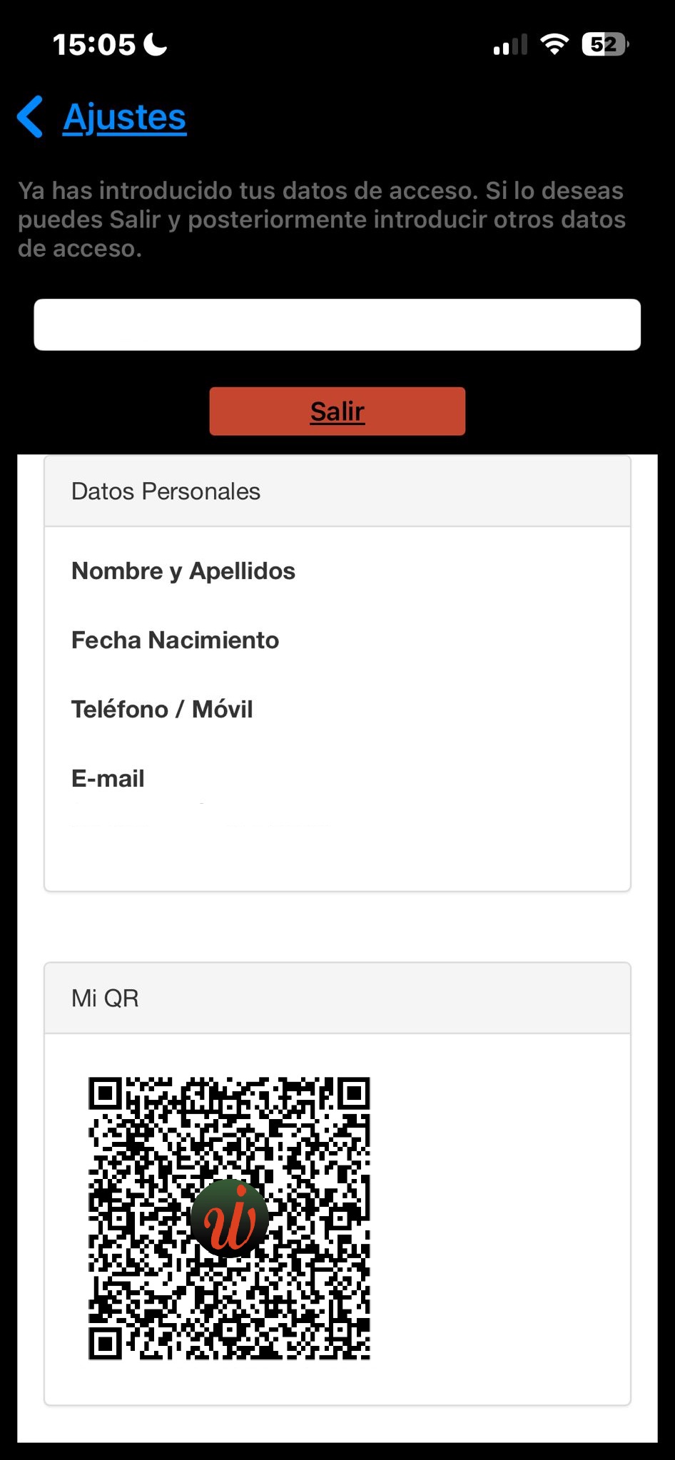 - Automáticamente le aparecerán todos sus datos y el código QR personal.