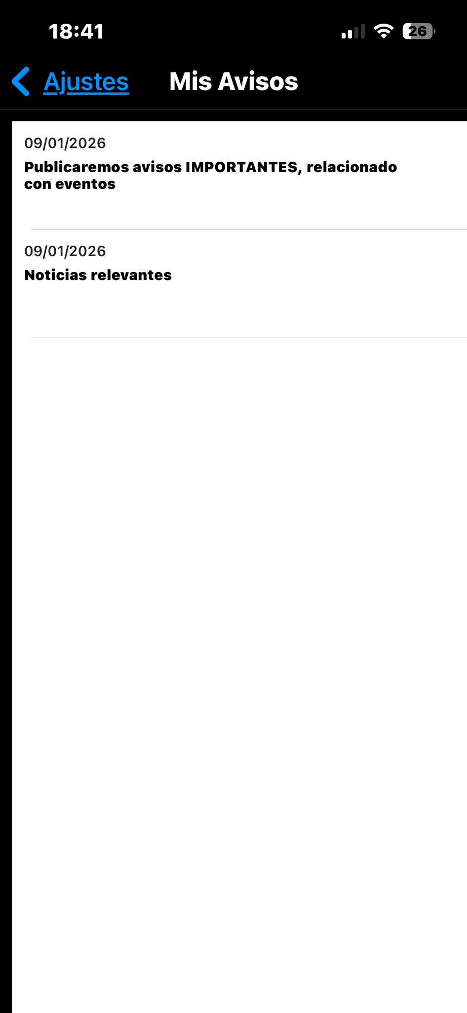 - [MIS AVISOS] A través de este canal de comunicaciones, estarás permanentemente informado de situaciones que puedan alterar el desarrollo de los eventos organizados. IMPORTANTE: Para poder ver los avisos tendrás que acceder de manera manual, no existen notificaciones.