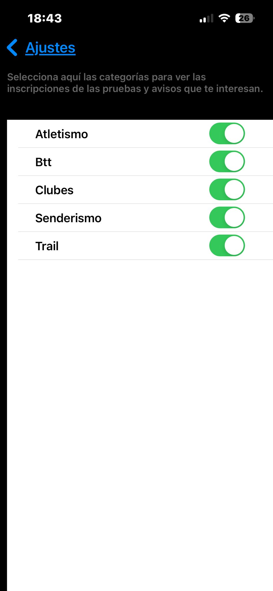 - [CATEGORÍAS] Configura las categorías de eventos a las que quieres estar suscrito. Solo te aparecerán los eventos de las categorías seleccionadas.
