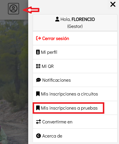 Acceda a su perfil y pinche en Mis inscripciones a pruebas: