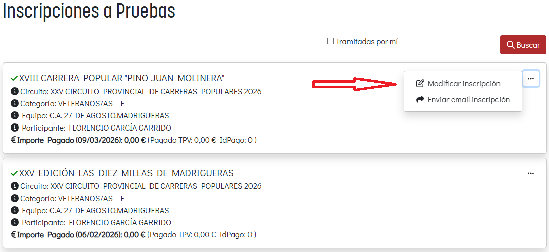 Modificar una inscripción ya realizada en la web oficial del circuito Diputación de Albacete, tiene múltiples ventajas, entre ellas la gratuidad de las mismas y no tener que pasar por incidencias el día de la prueba. Además los cambios son perfectamente válidos para optar a los premios de la prueba, cosa que no ocurre cuando dichos cambios se hacen el mismo día del evento.