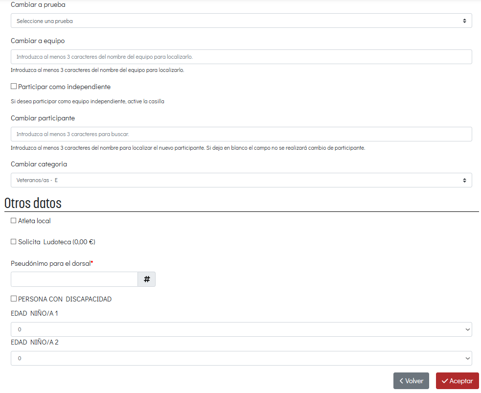 - Puedo ceder el dorsal a otra persona, cambiando el participante.